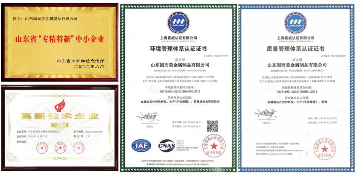 山東固而美金屬制品有限公司一直致力于為客戶提供更好的外殼解決方案,公司有專業(yè)的設(shè)計(jì)團(tuán)隊(duì),獲得國(guó)家專利共39項(xiàng),實(shí)用新型專利35項(xiàng),外觀專利3項(xiàng),發(fā)明專利1項(xiàng),產(chǎn)品均通過ISO9001質(zhì)量體系認(rèn)證和ISO14001環(huán)境管理體系認(rèn)證,有成熟完善的生產(chǎn)線,作為專業(yè)的鈑金加工廠,企業(yè)有三萬件產(chǎn)品的研發(fā)經(jīng)驗(yàn)。廠家有專業(yè)技術(shù)工人,含過程檢和完檢兩道質(zhì)檢工序,全天候工程人員在線為您提供技術(shù)支持,選擇我們更放心!歡迎各位廠家、客戶來圖或來樣定制產(chǎn)品。